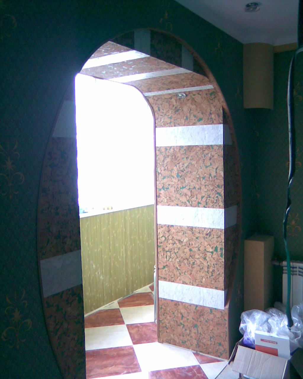 La procédure de finition d'une ouverture cintrée ne diffère pratiquement pas du collage de papier peint ordinaire. La base à laquelle le liège est fixé peut être en béton, en brique, en bois ou en plâtre.