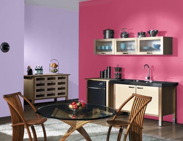 - Les murs peuvent être peints en combinant plusieurs teintes; comme décor supplémentaire, appliquez l'image à l'aide d'un pochoir. Des couleurs correctement sélectionnées augmenteront visuellement le volume de la pièce.