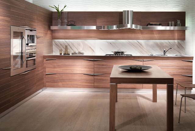 Récemment, des rails en alucobond - aluminium, qui sont souvent utilisés pour le revêtement extérieur, ont commencé à être utilisés. Mais ces matériaux n'ont pas trouvé une large diffusion dans la décoration des cuisines.