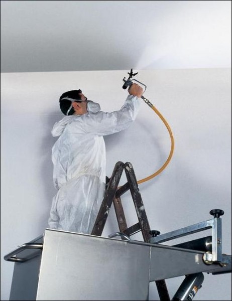 - Peindre le plafond avec une émulsion d'eau, une version classique, nécessite des travaux préparatoires. Il est nécessaire de niveler complètement la surface du plafond.