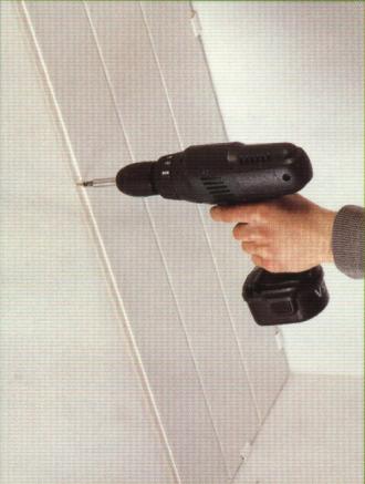 Après avoir terminé l'installation du cadre, vous pouvez procéder à l'installation de panneaux en PVC. Les fixations sont réalisées à l'aide de vis autotaraudeuses (25 mm) à tête plate.